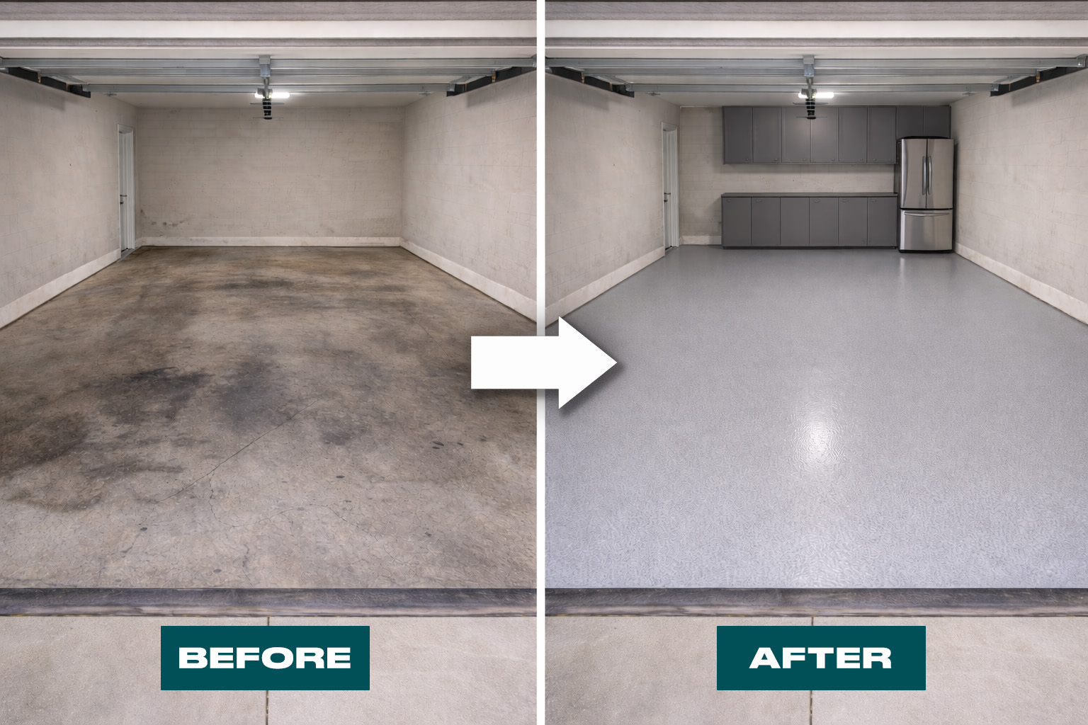 What was once a dark and dingy garage can be brought into the modern day simply with an everlasting single color epoxy coating.